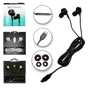 | FONE DE OUVIDO IN EAR TIPO C EXCELENTE QUALIDADE COM MICROFONE EXTRA BASS MAXMIDIA 1,2M |